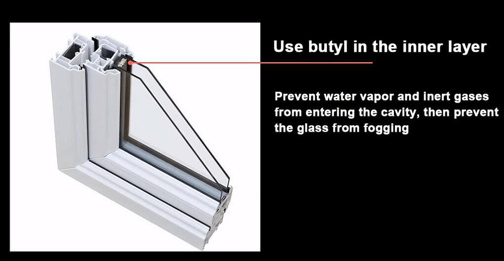 The first is butyl sealant, used in the inner layer. Its main function is to prevent water vapor and inert gases from entering the cavity. But butyl sealant has low adhesive strength and elasticity, so a secondary sealant is needed to ensure the structure stable.
